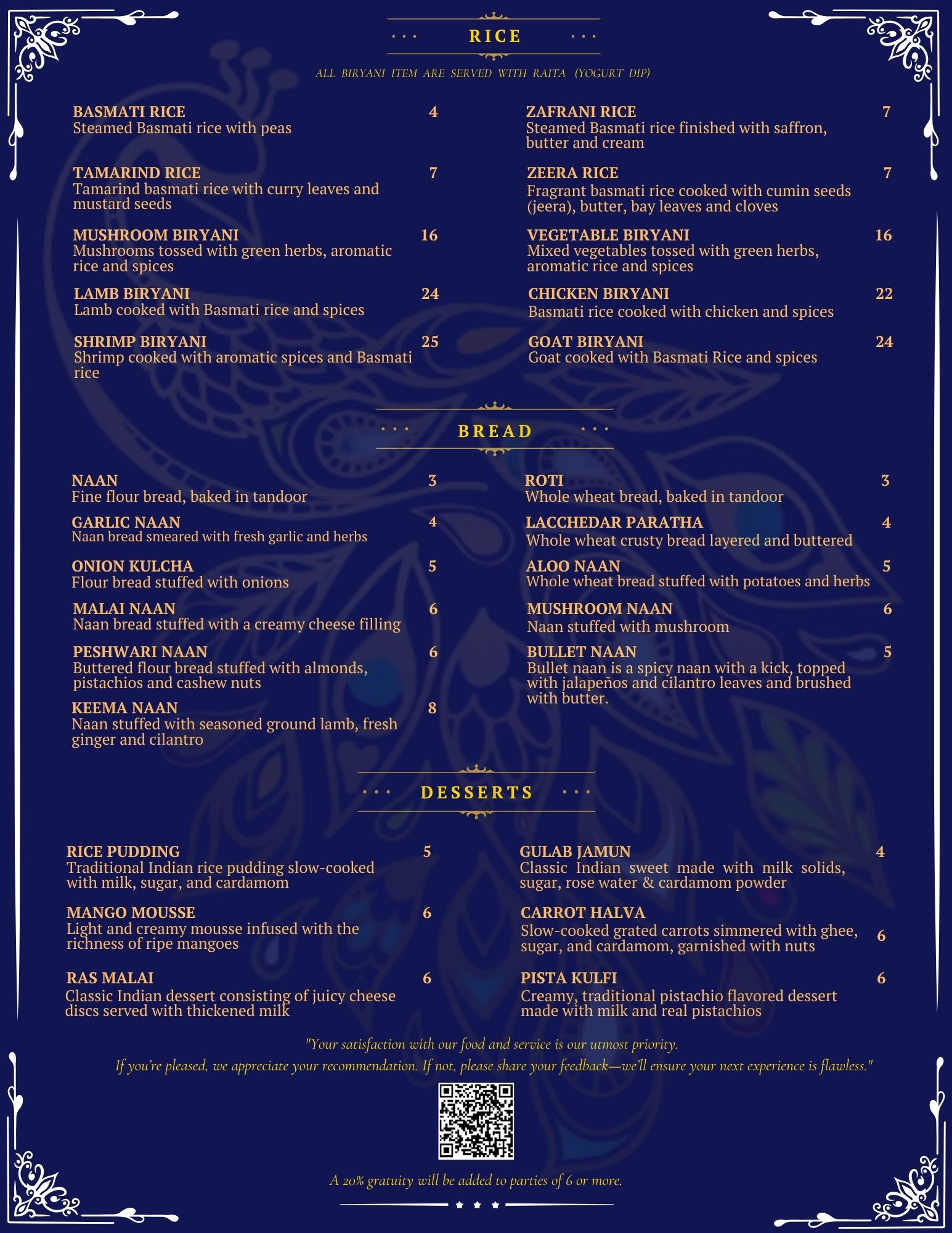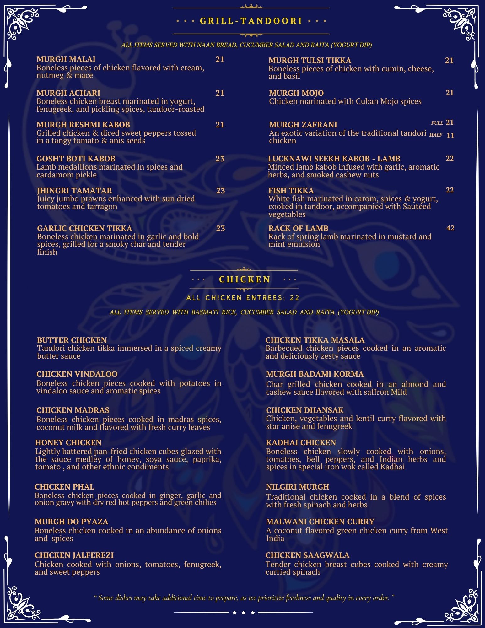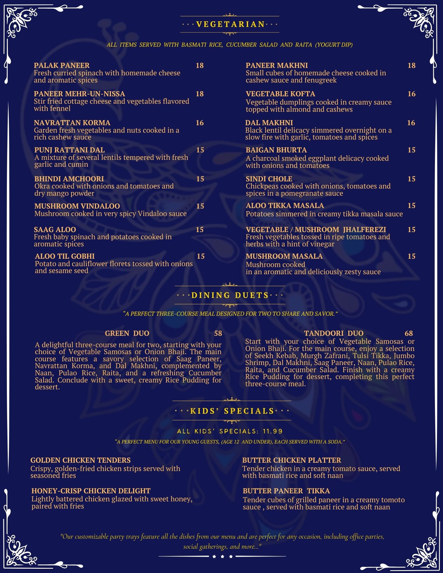 If you are trying Indian food, you deserve to know what you’re getting and the ingredients involved. We provide detailed descriptions for all the items on our menu for our customers’ convenience. This commitment makes our à la carte menu the best Indian food menu in Houston.